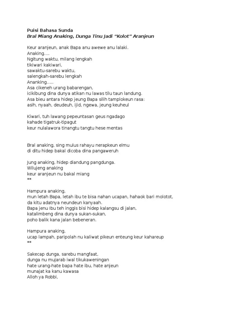 Download lagu sajak sunda || puisi bahasa sunda mp3. Kadang, abdi osok inget basa keur letik bahela nu calik di pangkuan ema. Sajak cinta · 3 3. Hese nu mawa bagja · 5 5. Sajak sunda tentang ibu â di peuting anu tiis kalayan berselimut kasorangan kuterbangun melong wiati .